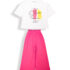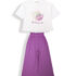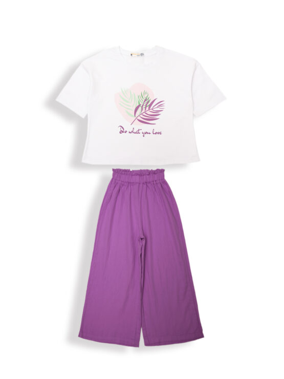 Костюм для девочки от 8 до 12 лет. Модель состоит из футболки прямого кроя и широких брюк. Материал ткани хлопчатобумажное полотно кулирная гладь с ярким печатным принтом. Сочные цвета в ассортименте.