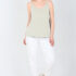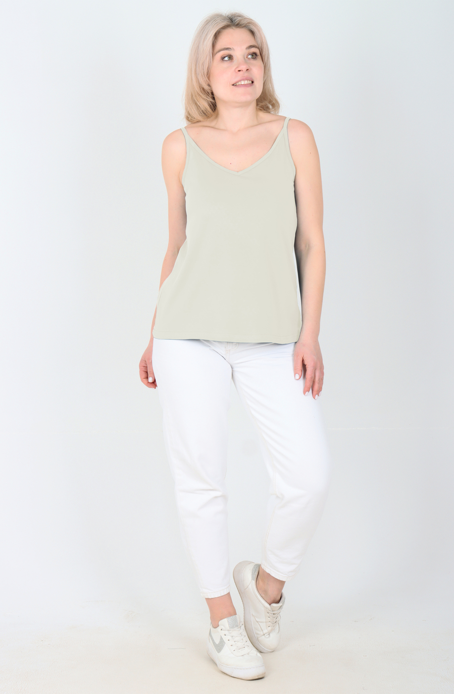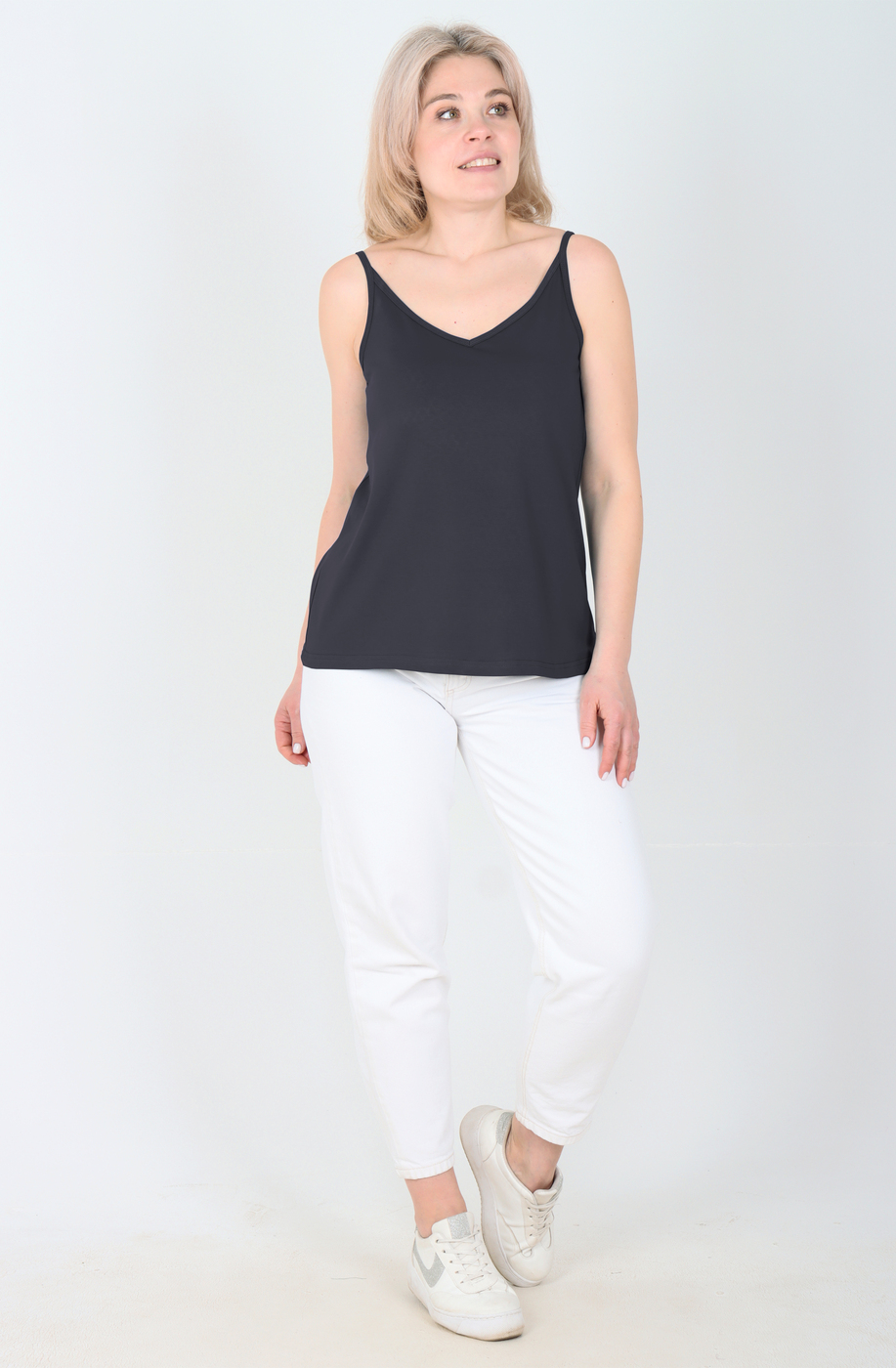 Женская майка на узких бретелях свободного силуэта средней длины. Эластичное трикотажное полотно комфортно ощущается на теле благодаря хлопковому составу, а добавление лайкры придает износостойкость. Майка выпускается в широкой цветовой гамме.