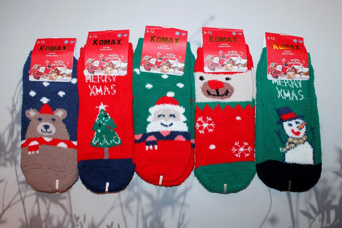 Носки детские теплые «Komax» №123 (5-8, 9-12) травка, Новый год (10 пар)