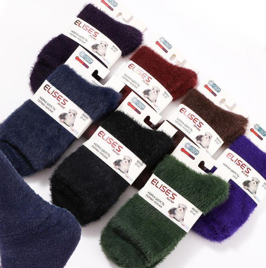 Женские теплые носки «Еlise’s» из норки обеспечивают комфорт и тепло в холодное время года. В упаковке 10 пар, что делает их идеальным выбором для повседневной носки. Мягкий и приятный на ощупь материал отлично удерживает тепло, а разнообразные цвета и дизайны позволят выбрать подходящие носки под любой наряд.