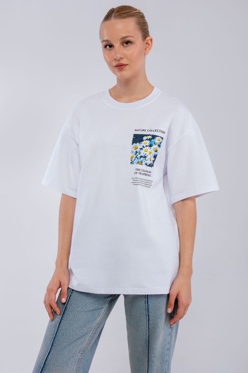 Женская футболка с ярким и оригинальным дизайном в виде букета ромашек. Модель представлена в размерах 44-52, что делает её идеальной для женщин с различными фигурами. Изготовлена из качественных материалов, обеспечивающих комфорт и долговечность. Отличный выбор для повседневной носки и для создания стильных образов.